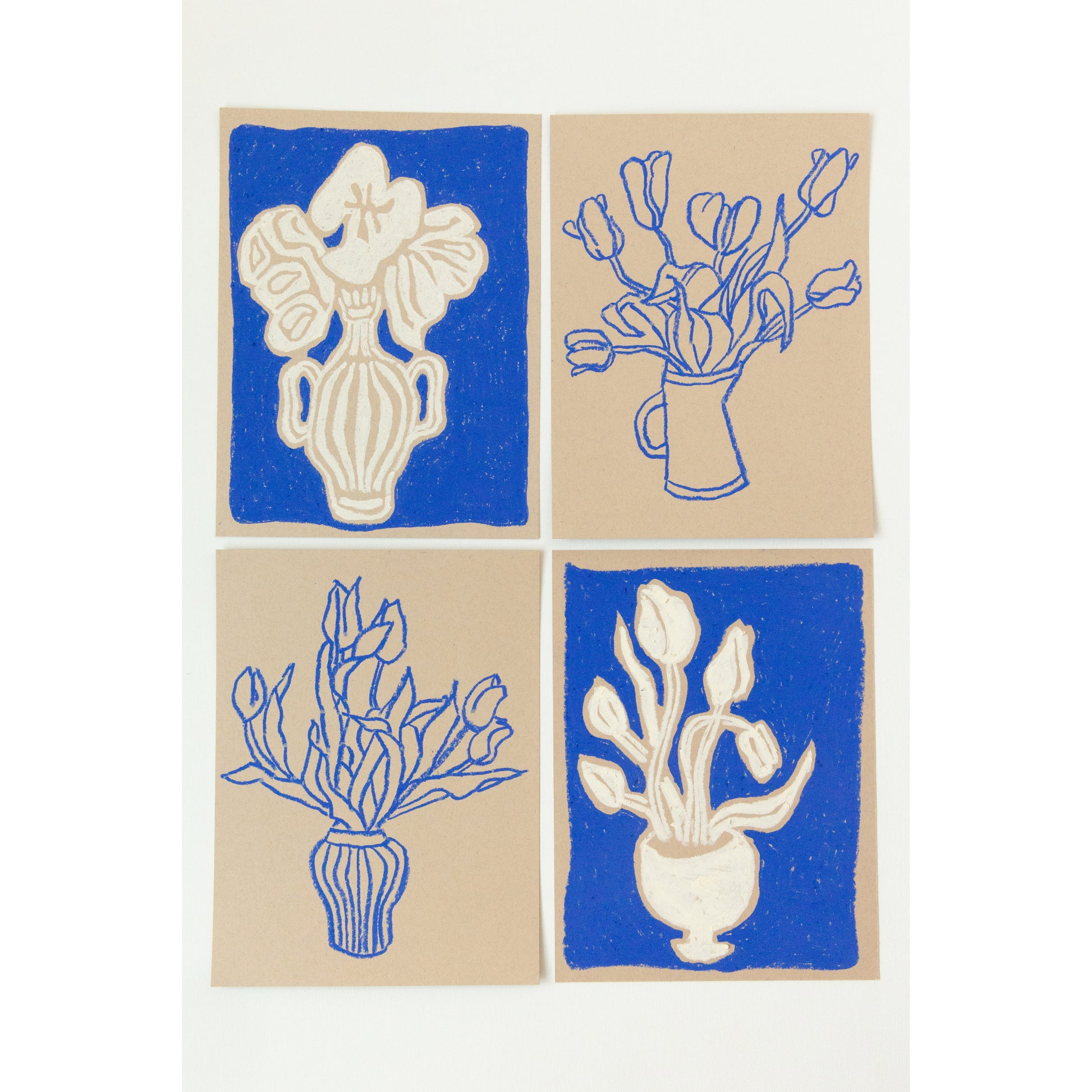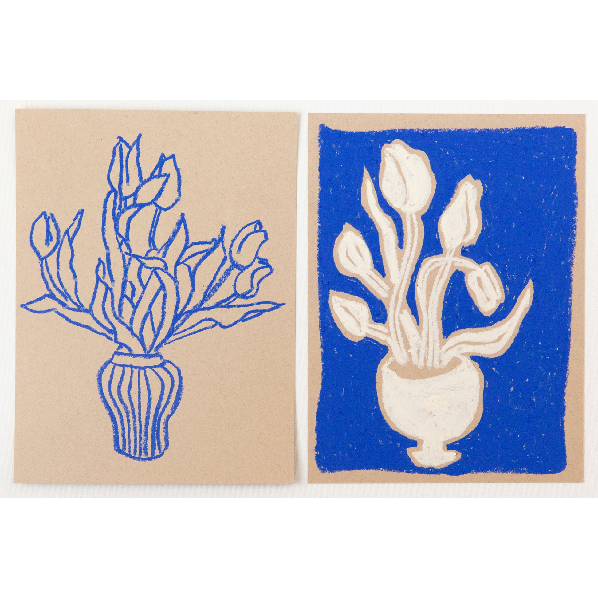 Blue & cream oil pastel on tan heavyweight paper (184 lb.)