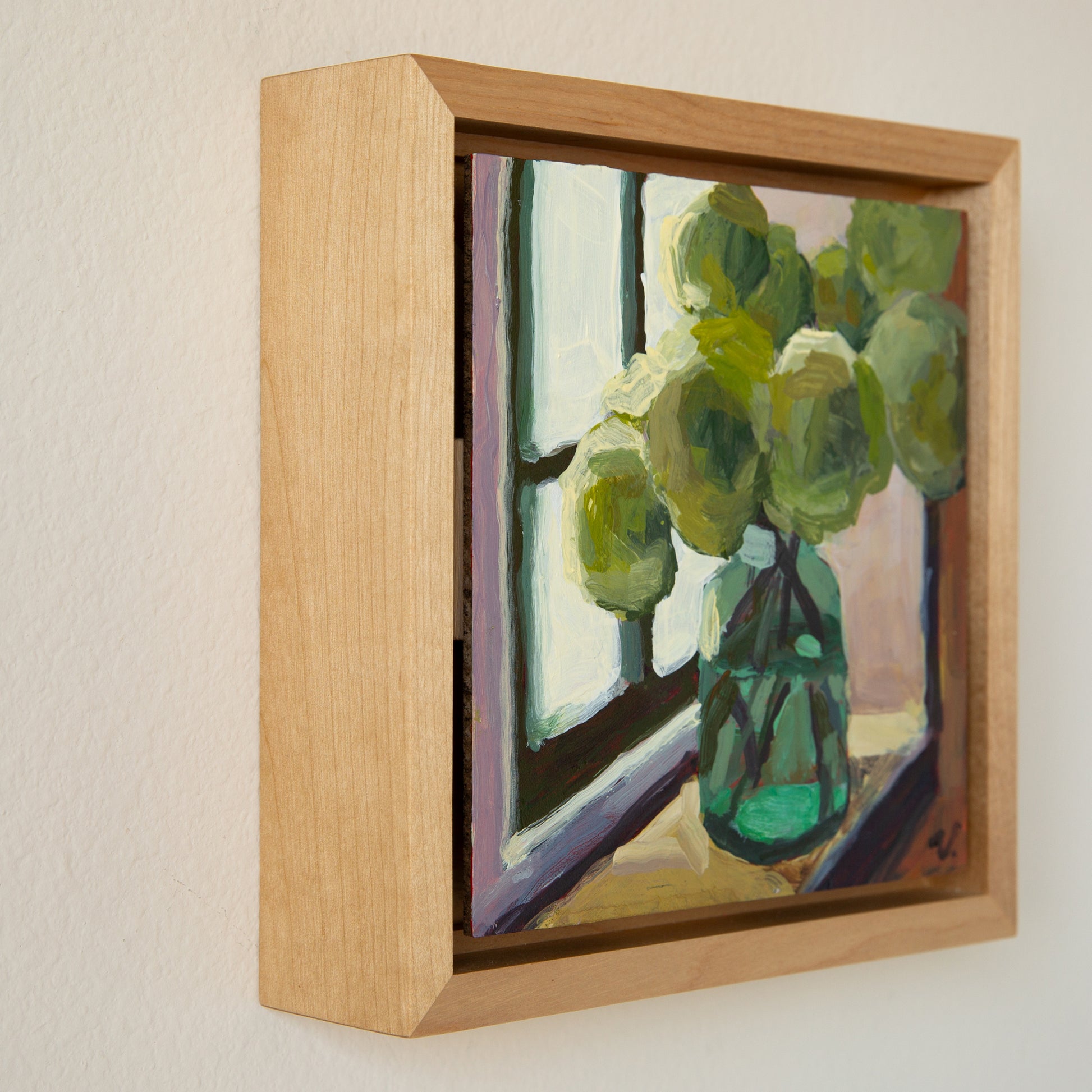 Framed in an elegant maple wood floater frame, 1 ⅞” deep. Premium hardwood.