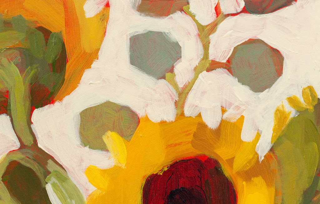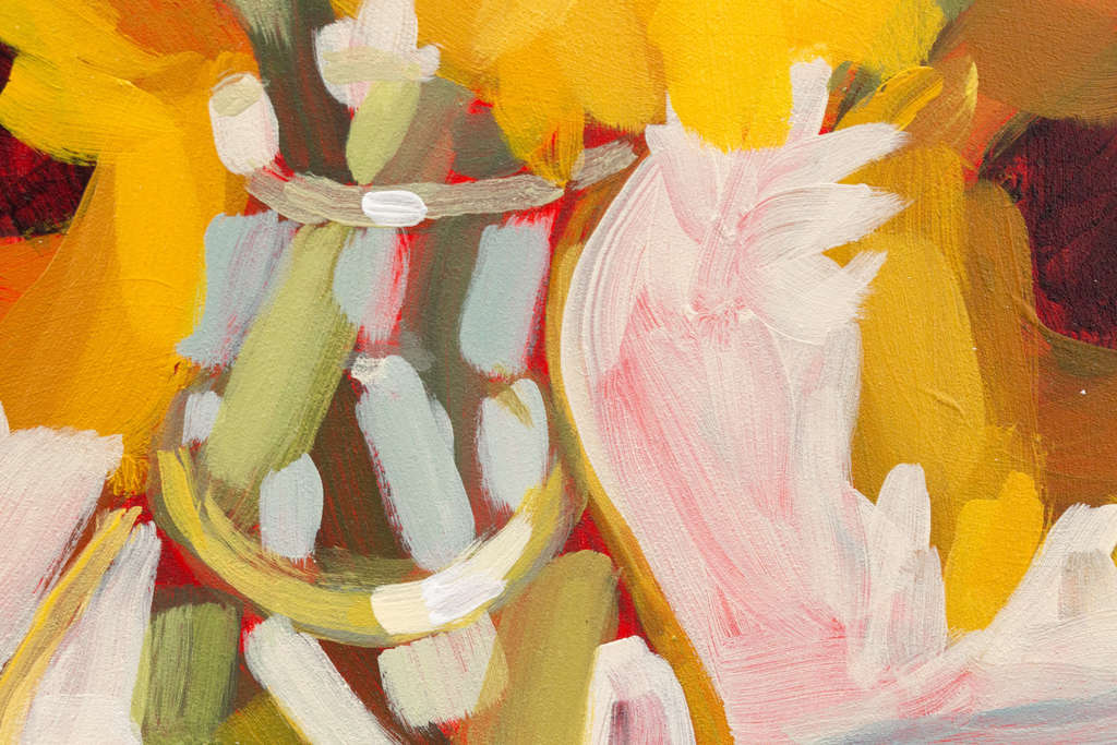 Original art featuring a variety of yellows and greens on a cream-colored background.