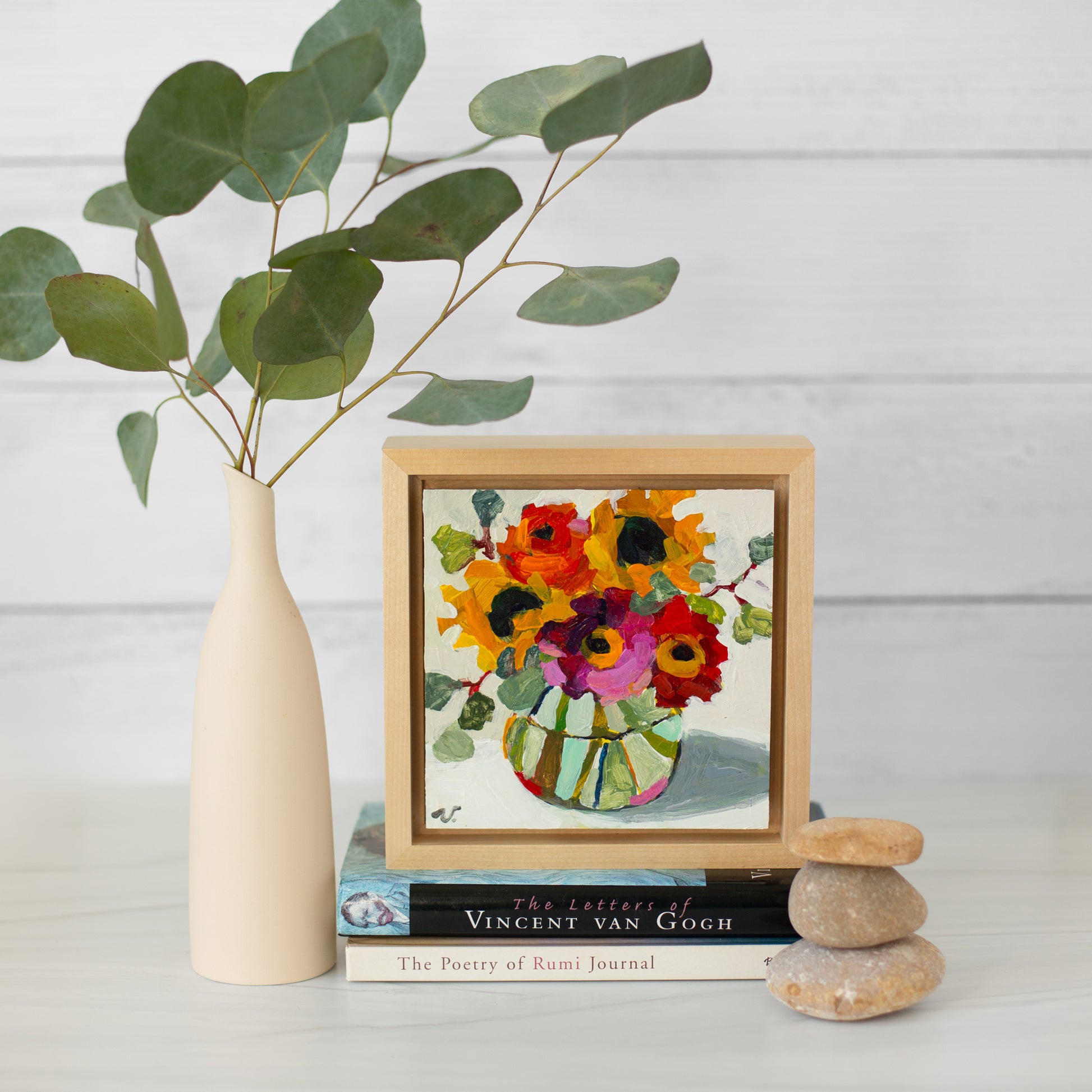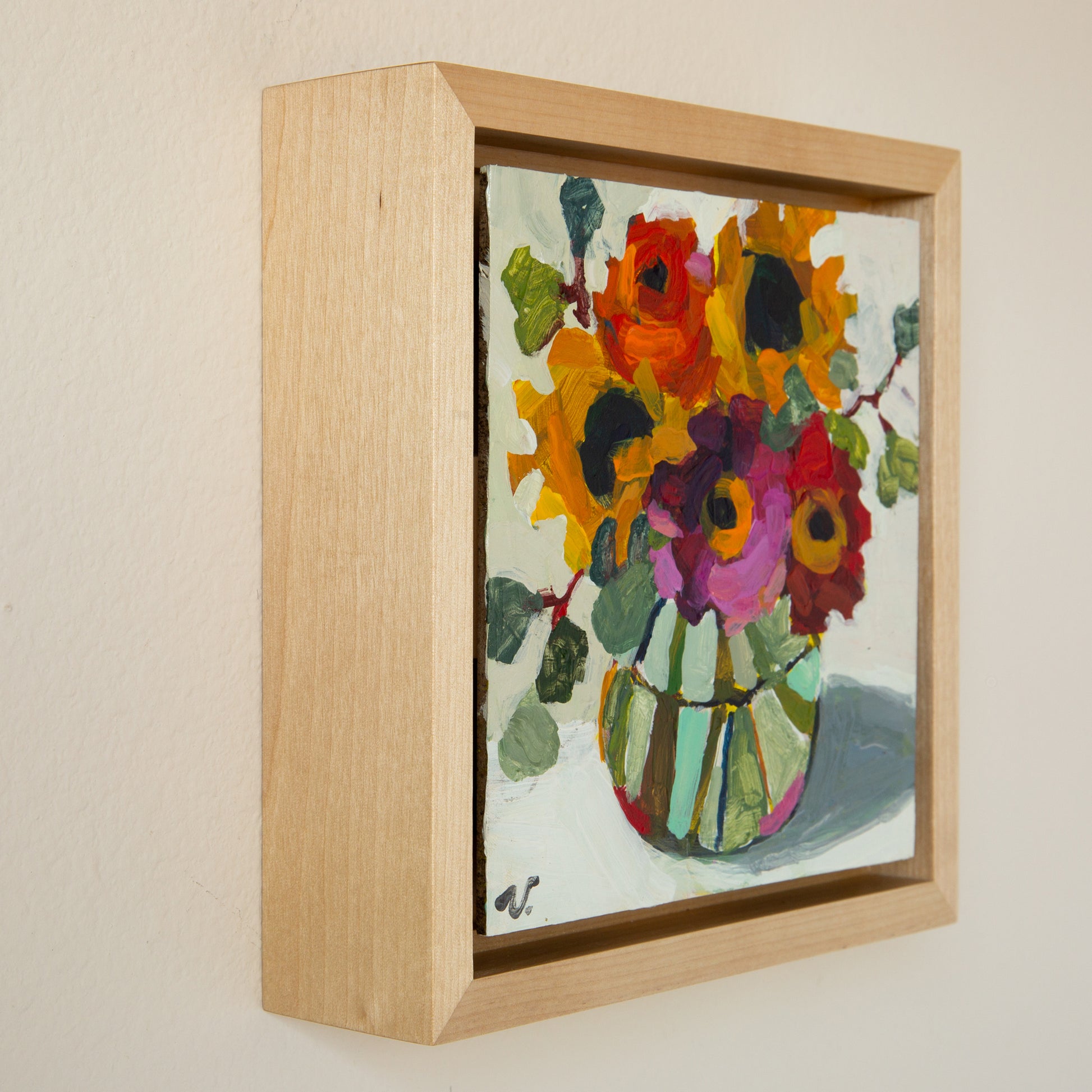 Framed in an elegant maple wood floater frame, 1 ⅞” deep. Premium hardwood.