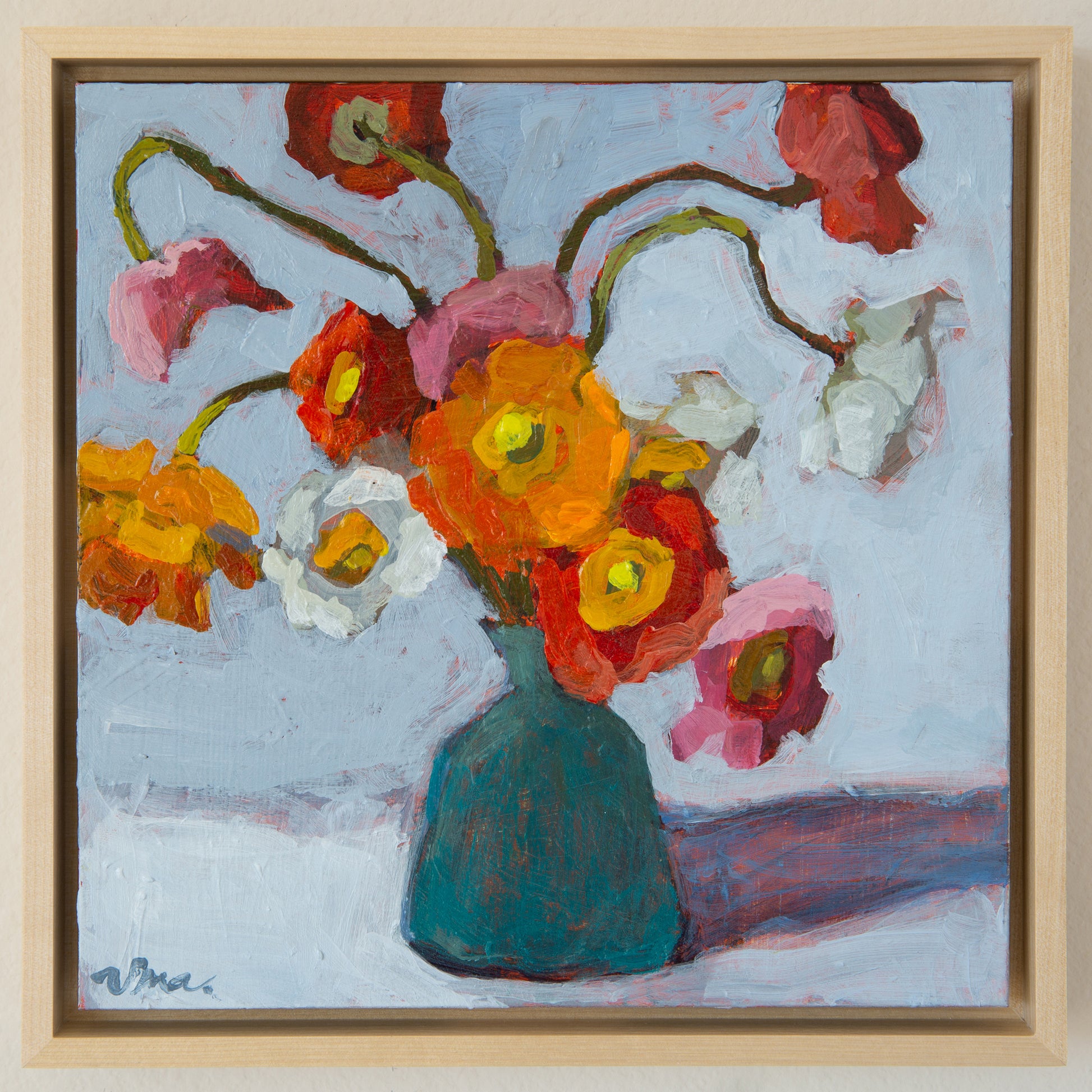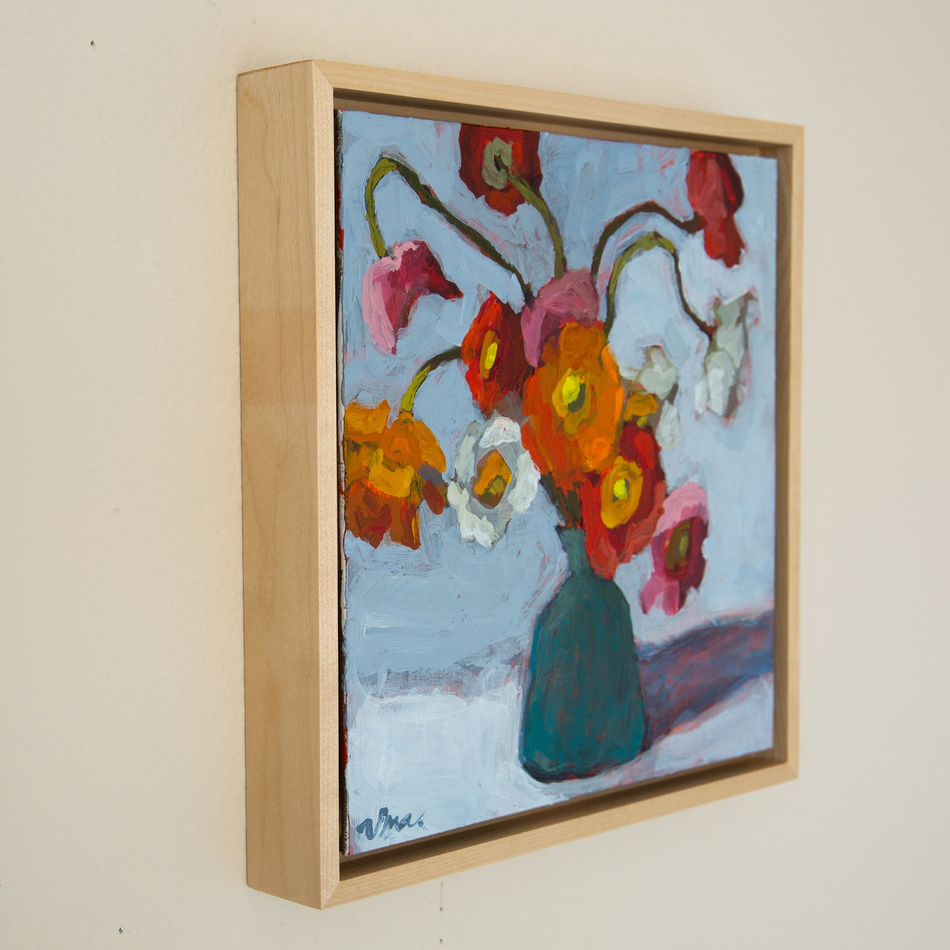 Framed in an elegant maple wood floater frame, 1 ¼” deep. Premium hardwood.