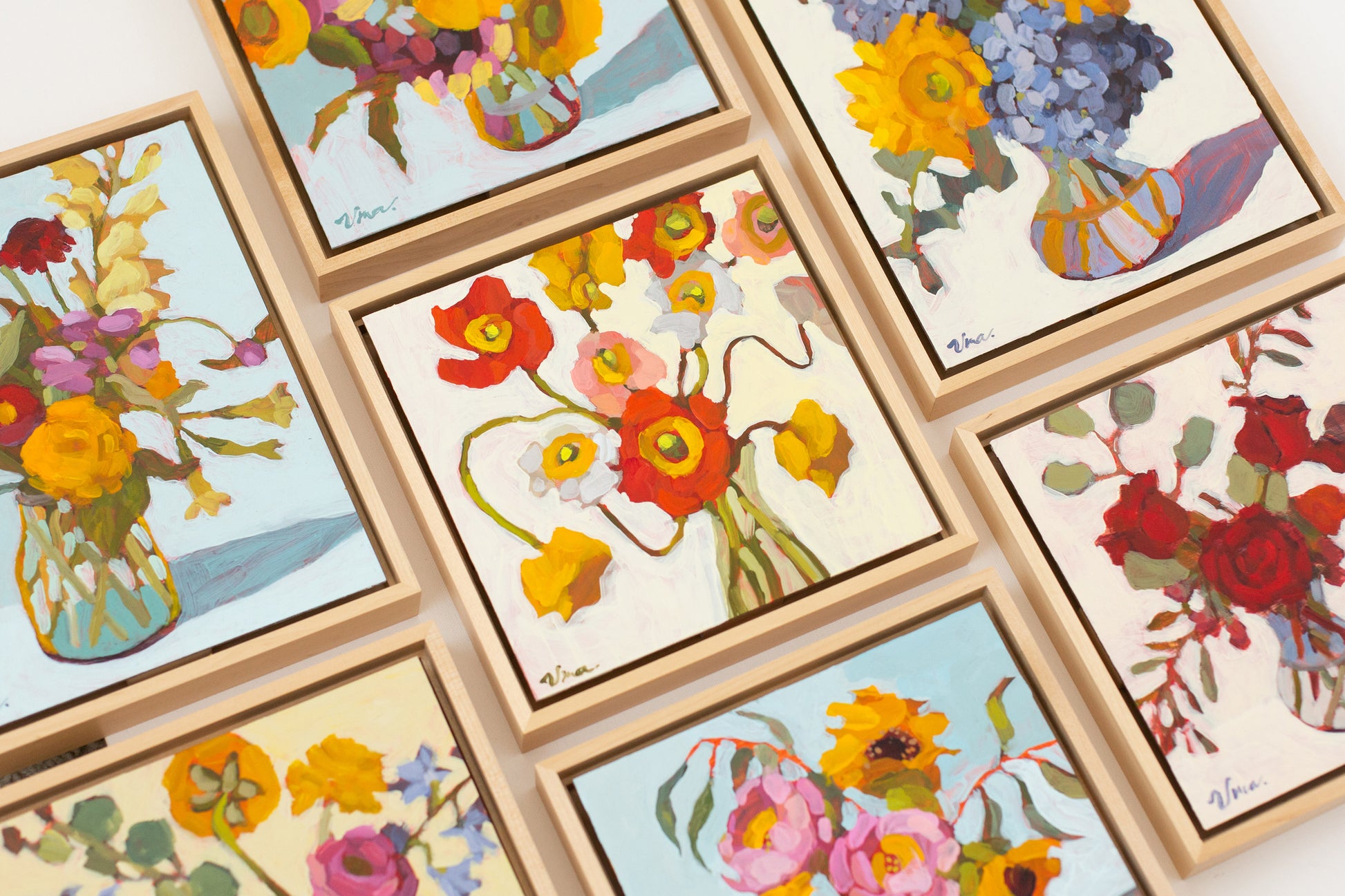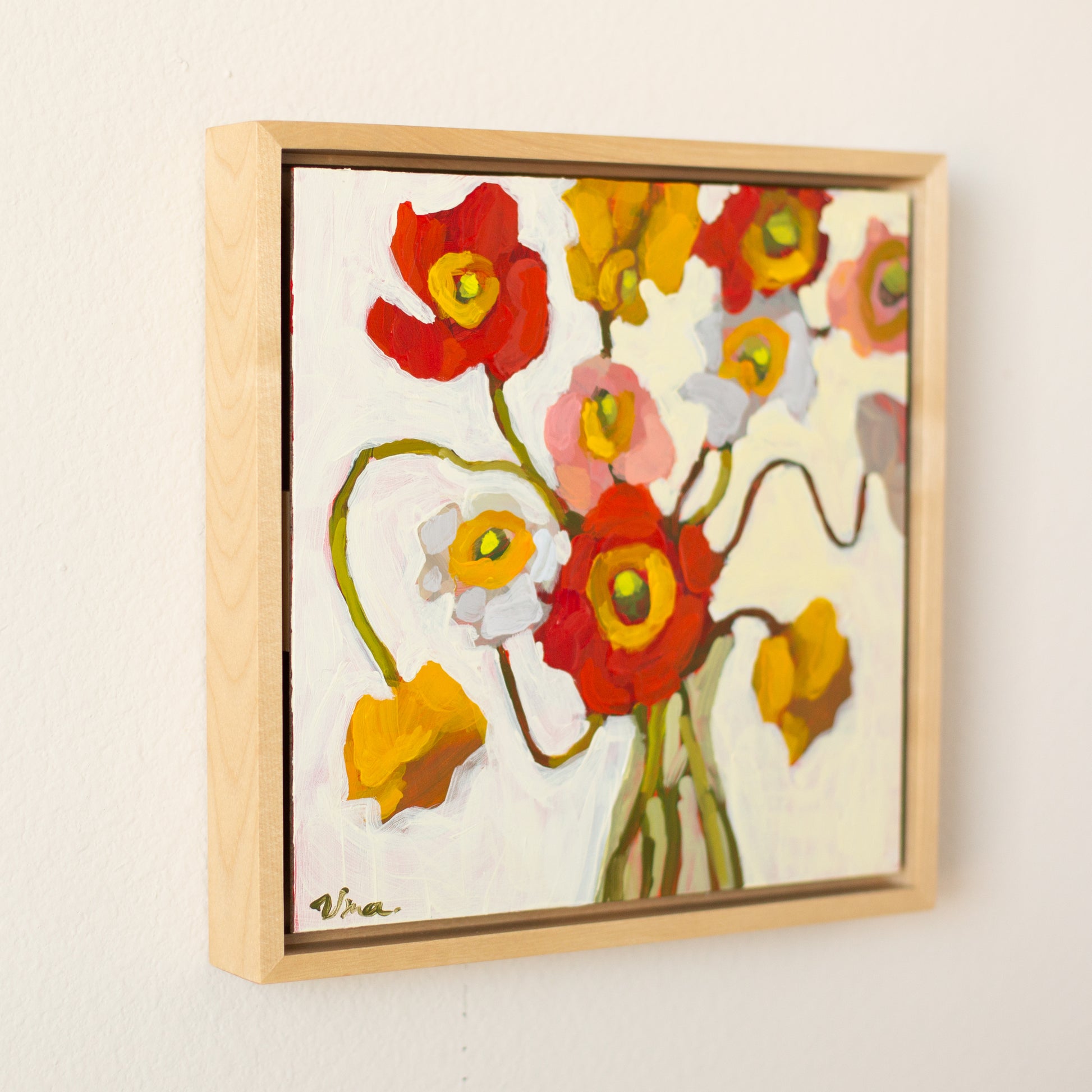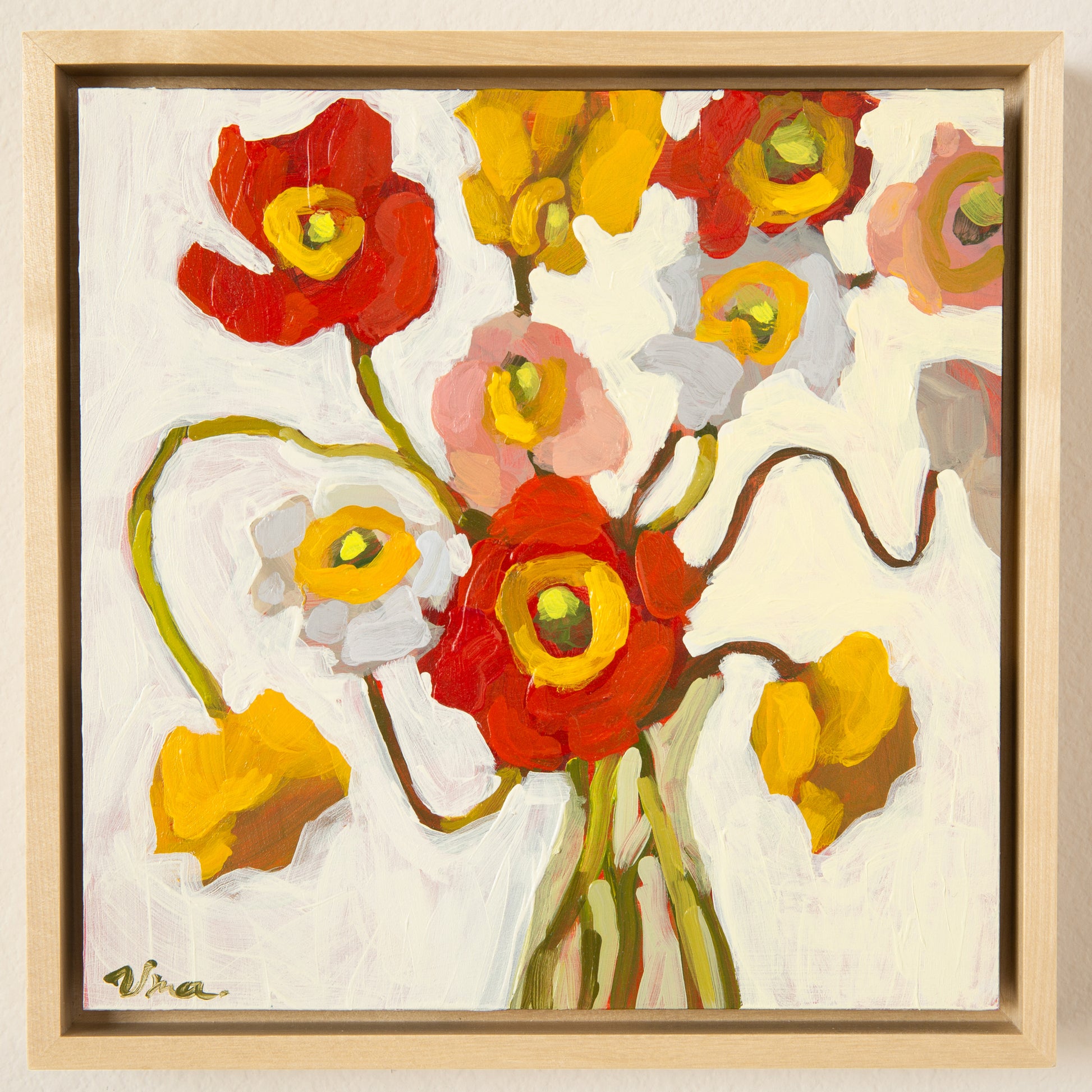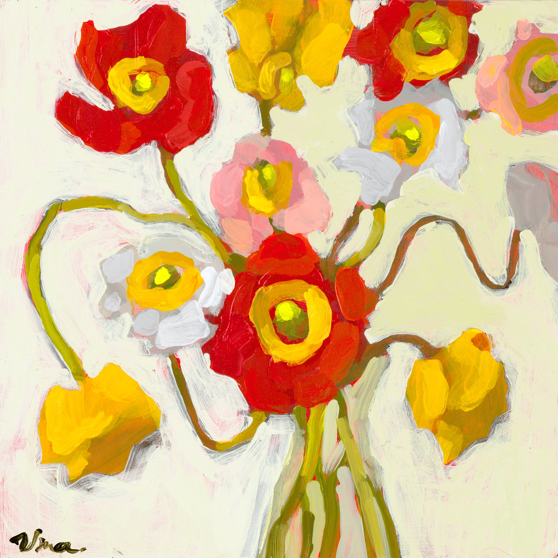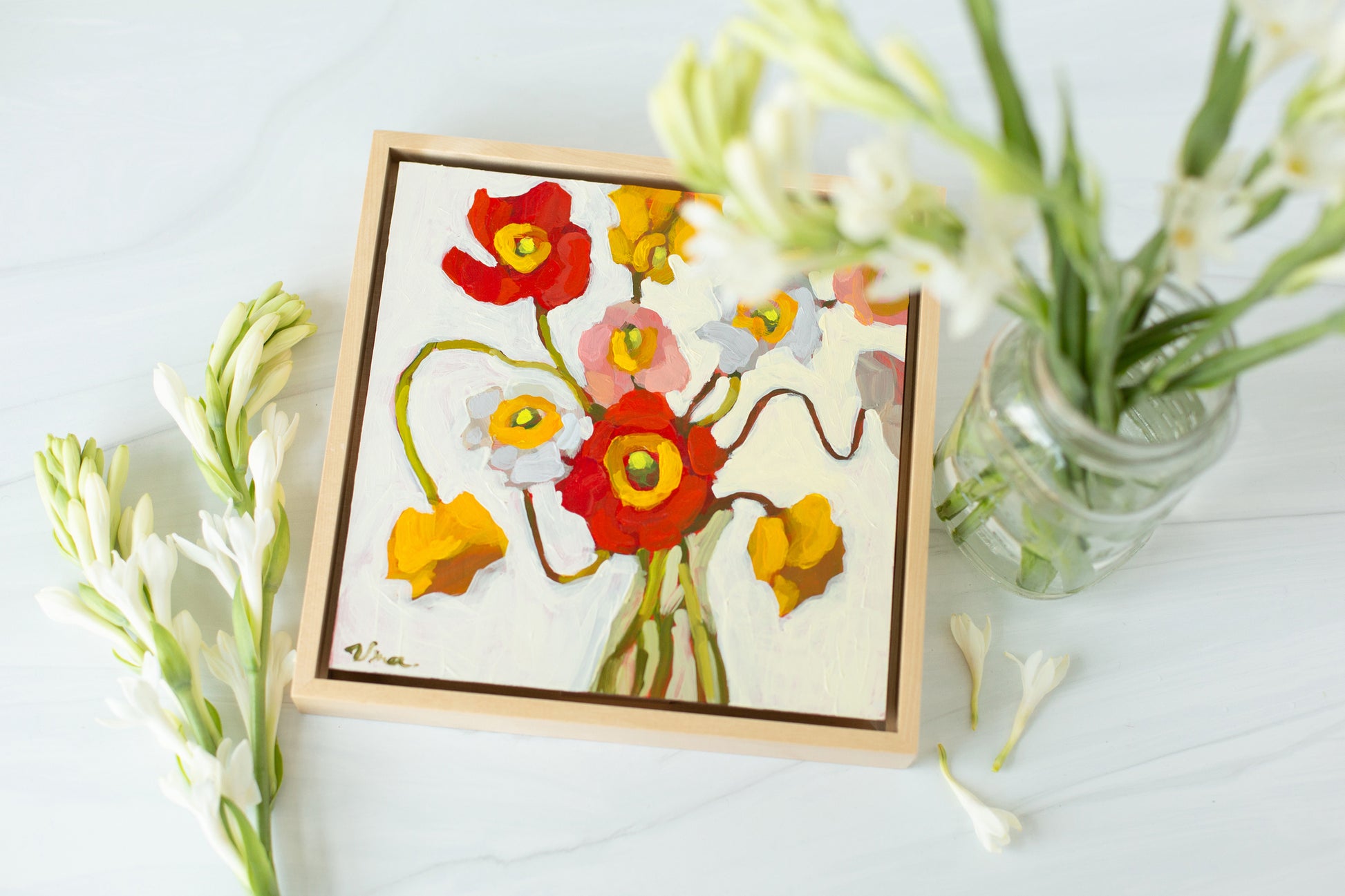 I saw my first bouquet of Iceland poppies a couple of years ago, and it was love at first sight. In case you’ve never seen one in person, imagine a delicate, whimsical flower with tissue-thin petals and long, fuzzy Dr. Suess-esque stems that twist and turn in all directions. But my favorite part of an Iceland poppy is the neon yellow center: what a showstopper. It’s so much fun to paint that I save it for last. Just like dessert.