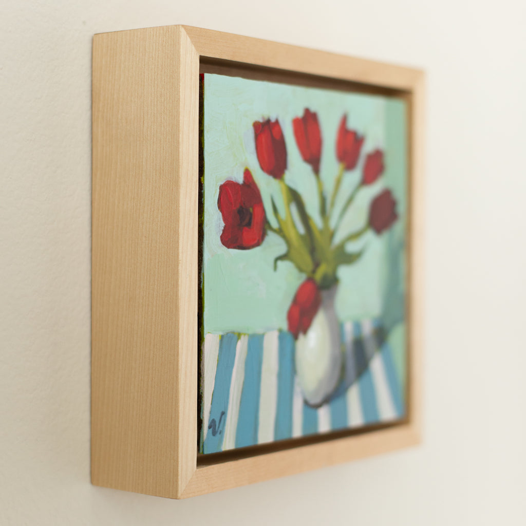 Framed in an elegant maple wood floater frame, 1 ⅞” deep. Premium hardwood.
