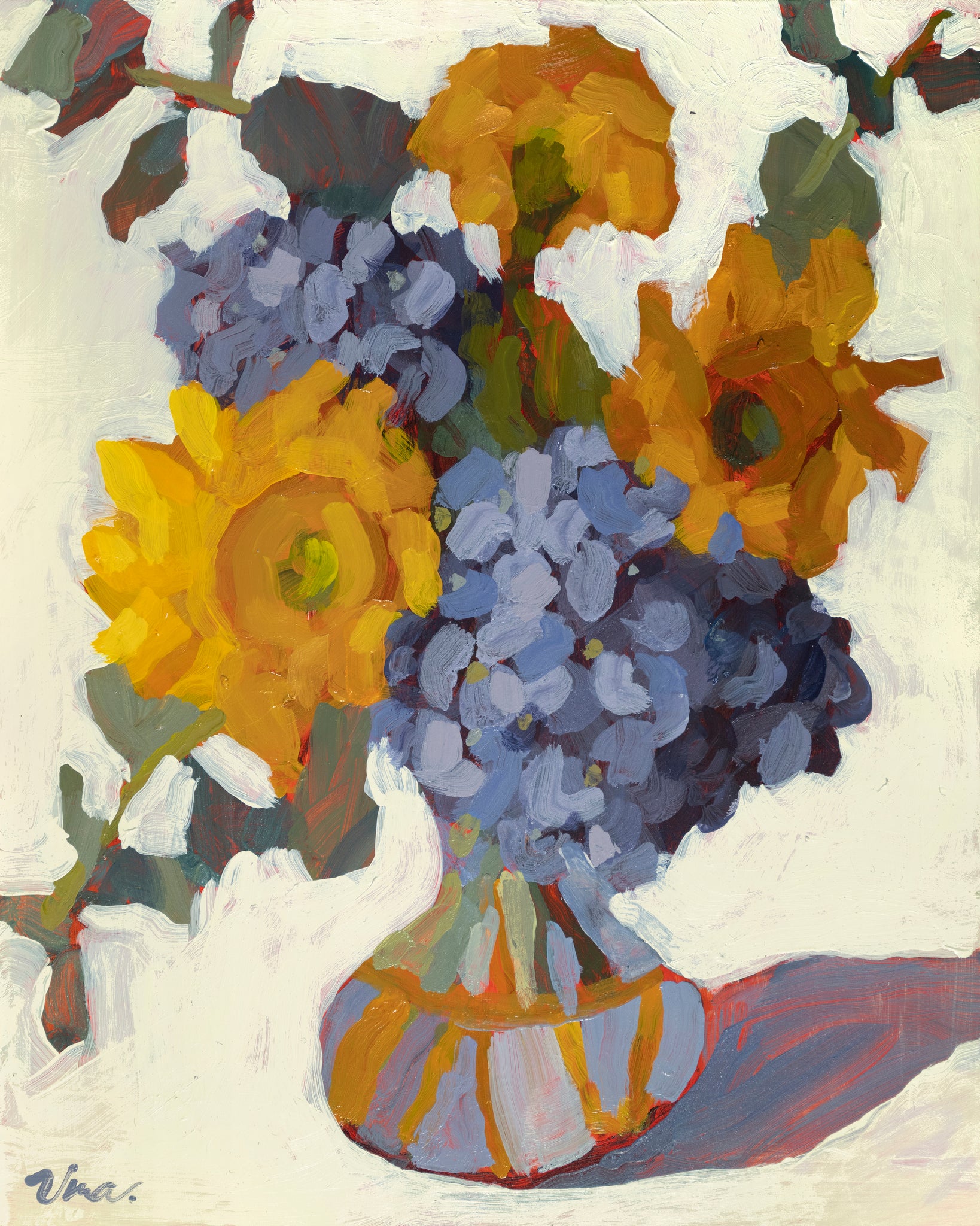 This was the first painting I ever did with my non dominant hand — my left hand. I love to paint loose, and painting with the non-dominant hand can help with that. There’s less control over the brush, which can be quite freeing. I find it to be a workout for my brain. I enjoyed it so much that I continue doing left-handed paintings to this day — except for the signature, which I don’t have enough dexterity to do with my left-hand… yet.