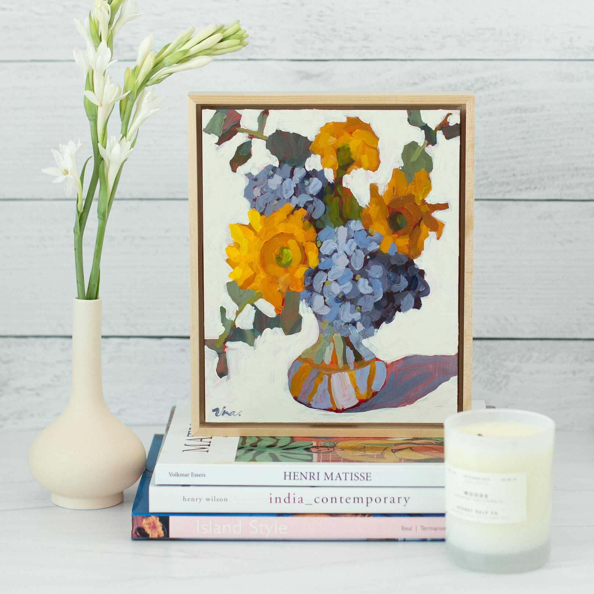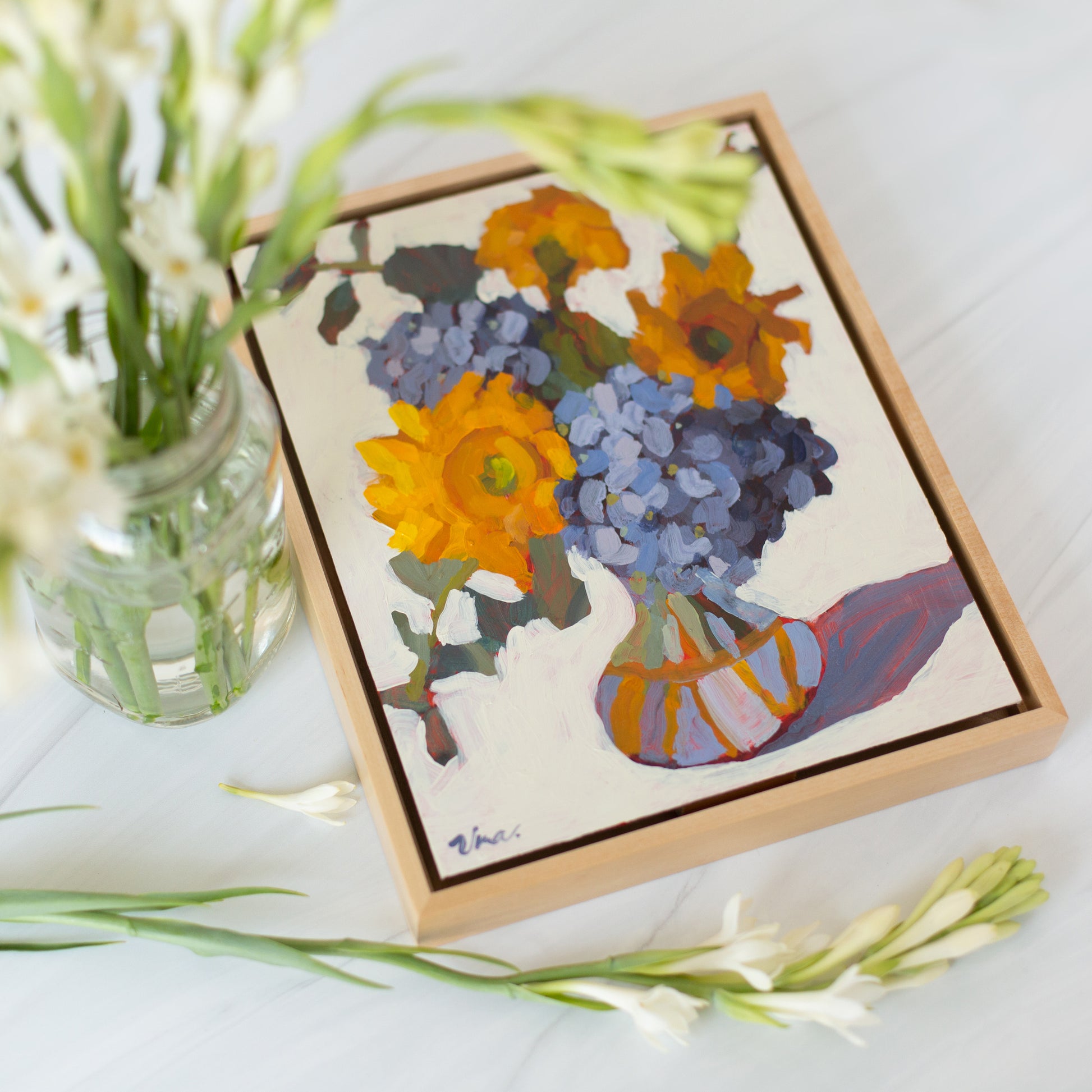 Framed in an elegant maple wood floater frame, 1 ¼” deep. Premium hardwood.